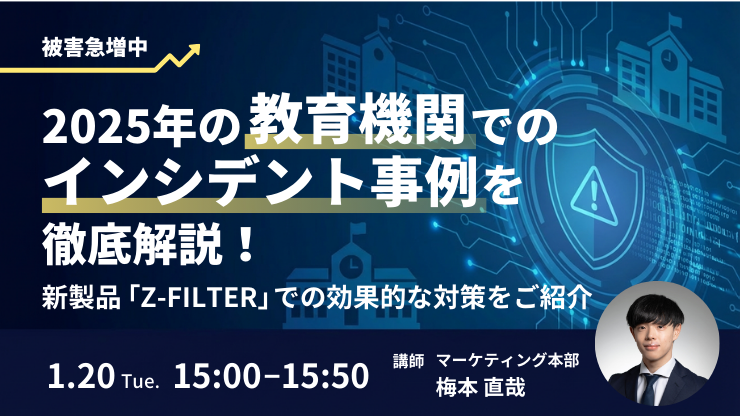 本セミナーでは、2025年に実際に起きたインシデントについて振り返りと解説をしたうえで、限られたコスト・リソースでも簡単に導入できるネットワークセキュリティの新製品「Z-FILTER」をデモを交えてご紹介いたします。ぜひご参加ください!
