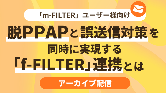 本セミナーでは、メールセキュリティ製品「m-FILTER」と、データ保護・ファイル転送サービス「f-FILTER」を連携させることで、メールにファイルを添付するだけで自動的に安全な共有リンクへ変換できる仕組みをご紹介します。