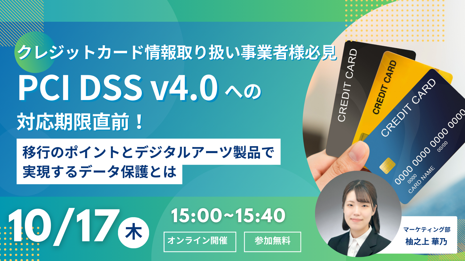 本セミナーでは、PCI DSS v4.0のポイントと必要なセキュリティ対策を解説し、デジタルアーツ製品で実現できる対策を、Web、メール、ファイル、認証の4つの観点でご紹介します。クレジットカードを取り扱う事業者の方や、関係する販売代理店の方は、ぜひご参加ください!