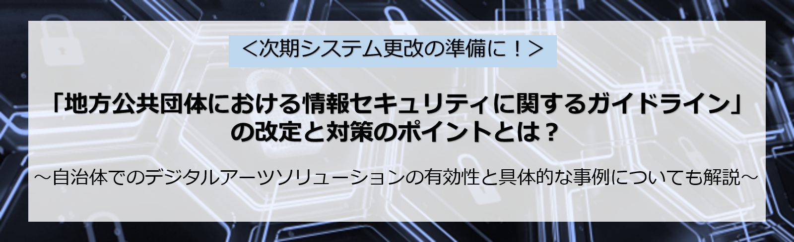 本セミナーでは、「地方公共団体における情報セキュリティに関するガイドライン」の改定内容を解説し、今回の改定内容を踏まえて、デジタルアーツの「Web」「メール」「ファイル」ソリューションが、αモデル、βモデル、β‘モデルでどのような対策ができるのかについて、事例も交えて説明いたします。