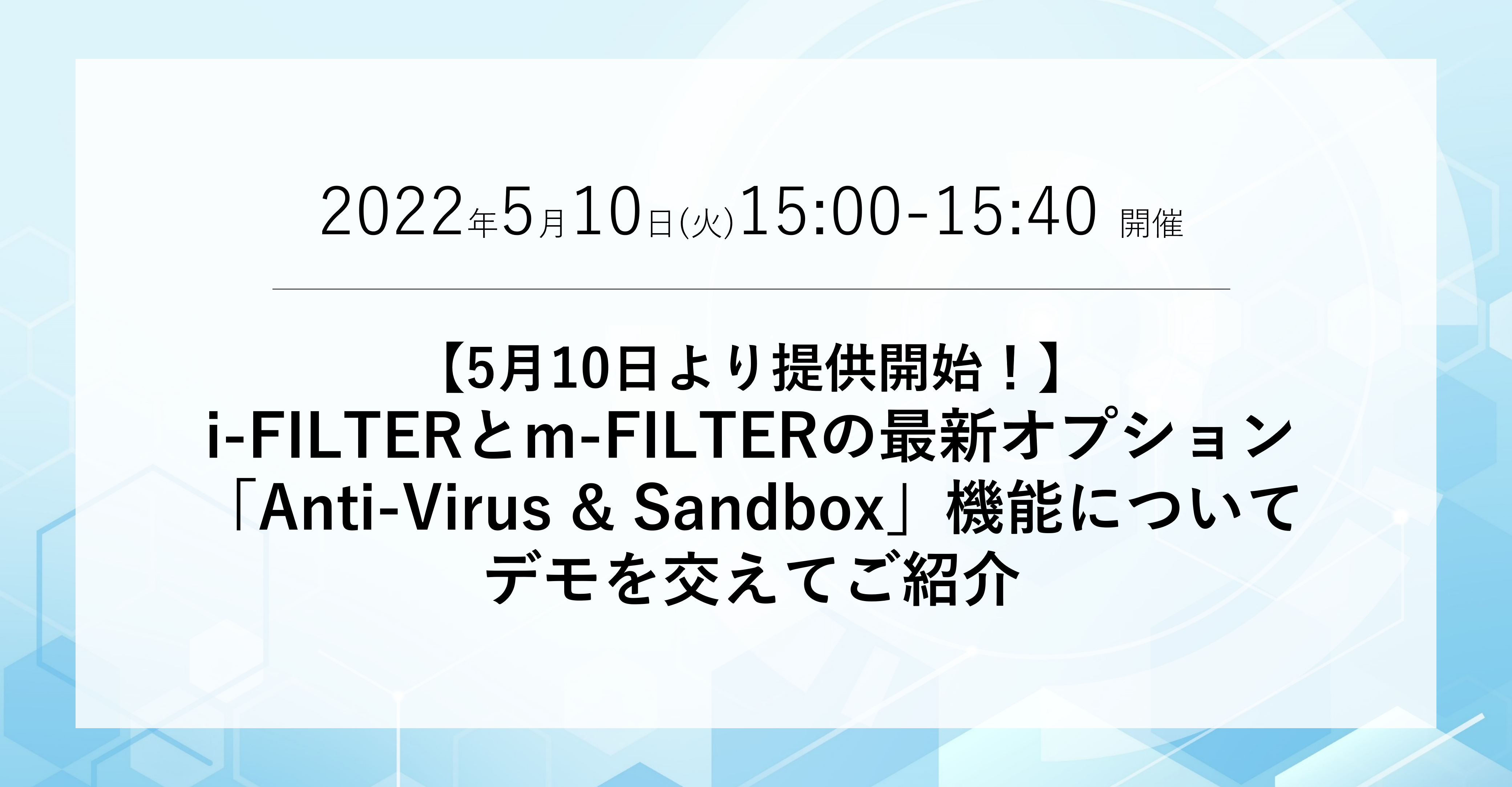 デジタルアーツはそのような状況を受け、2022年5月10日よりWebセキュリティ製品「i-FILTER」とメールセキュリティ製品「m-FILTER」に、新オプションとして「Anti-Virus & Sandbox」機能を提供開始いたします。
