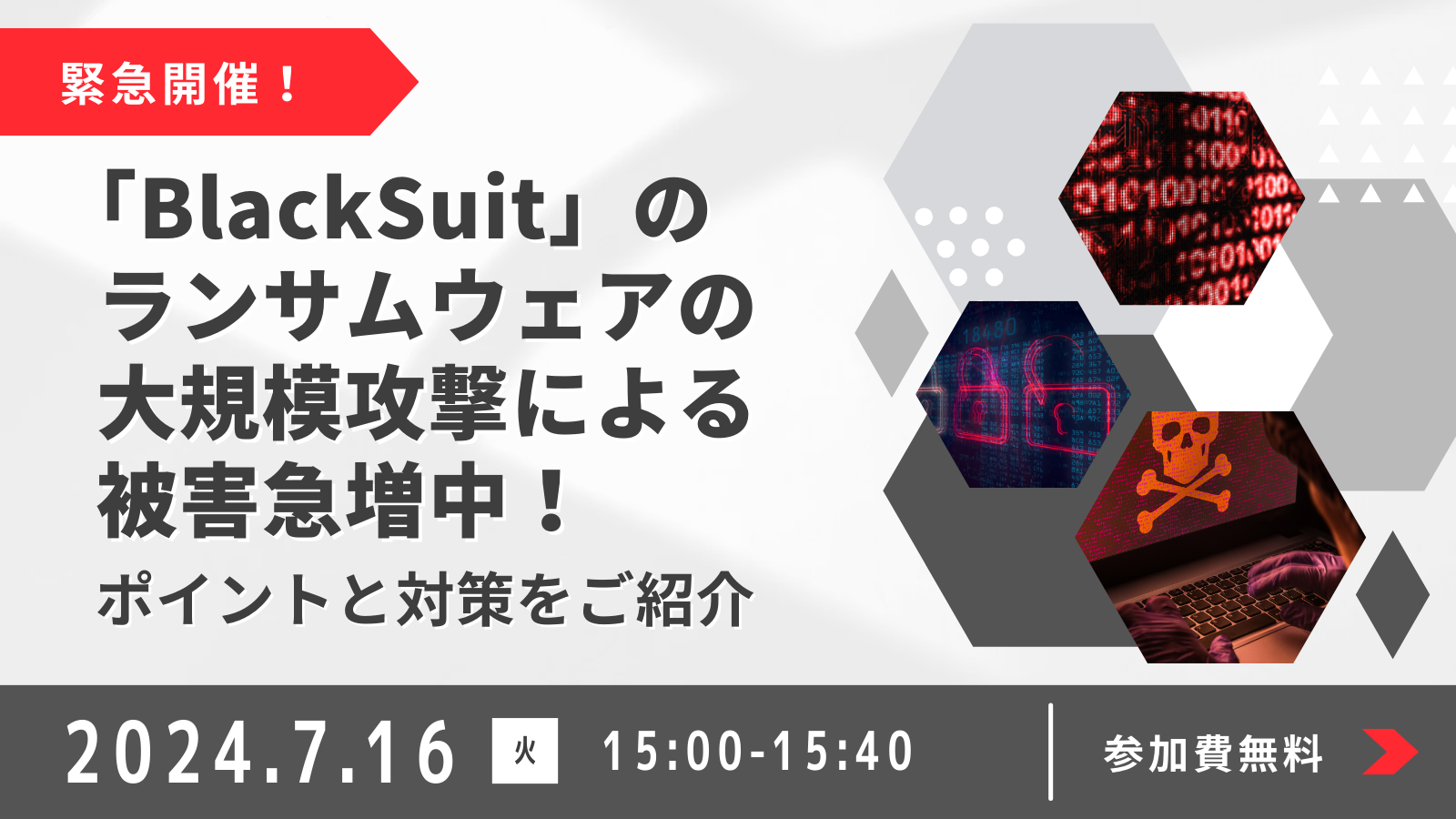 今般、ランサムウェア攻撃グループ「BlackSuit」による大規模攻撃が世界的に実行され、被害が急増しています。